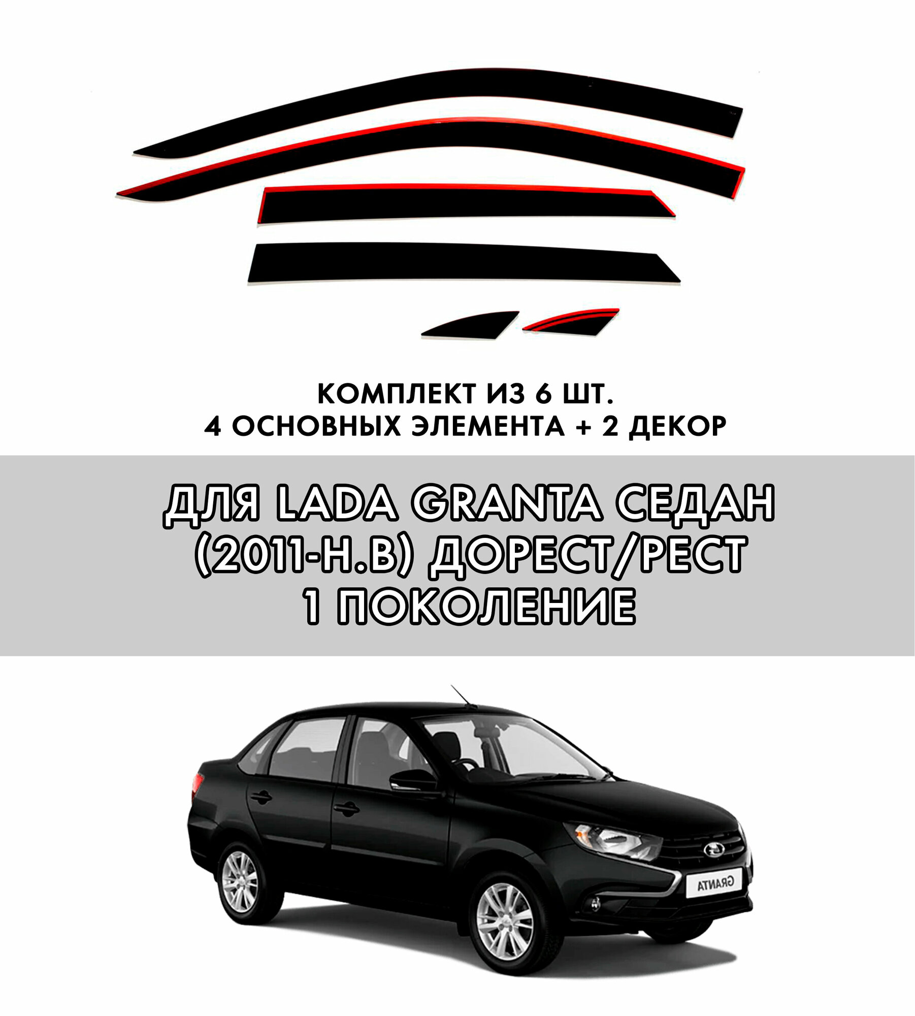 2D дефлекторы для Lada Granta седан (2011-н. в) Ветровики для Лада Гранта седан. Комплект 6 шт.: сравнение цен, характеристики, фото, актуальное наличие и цены.