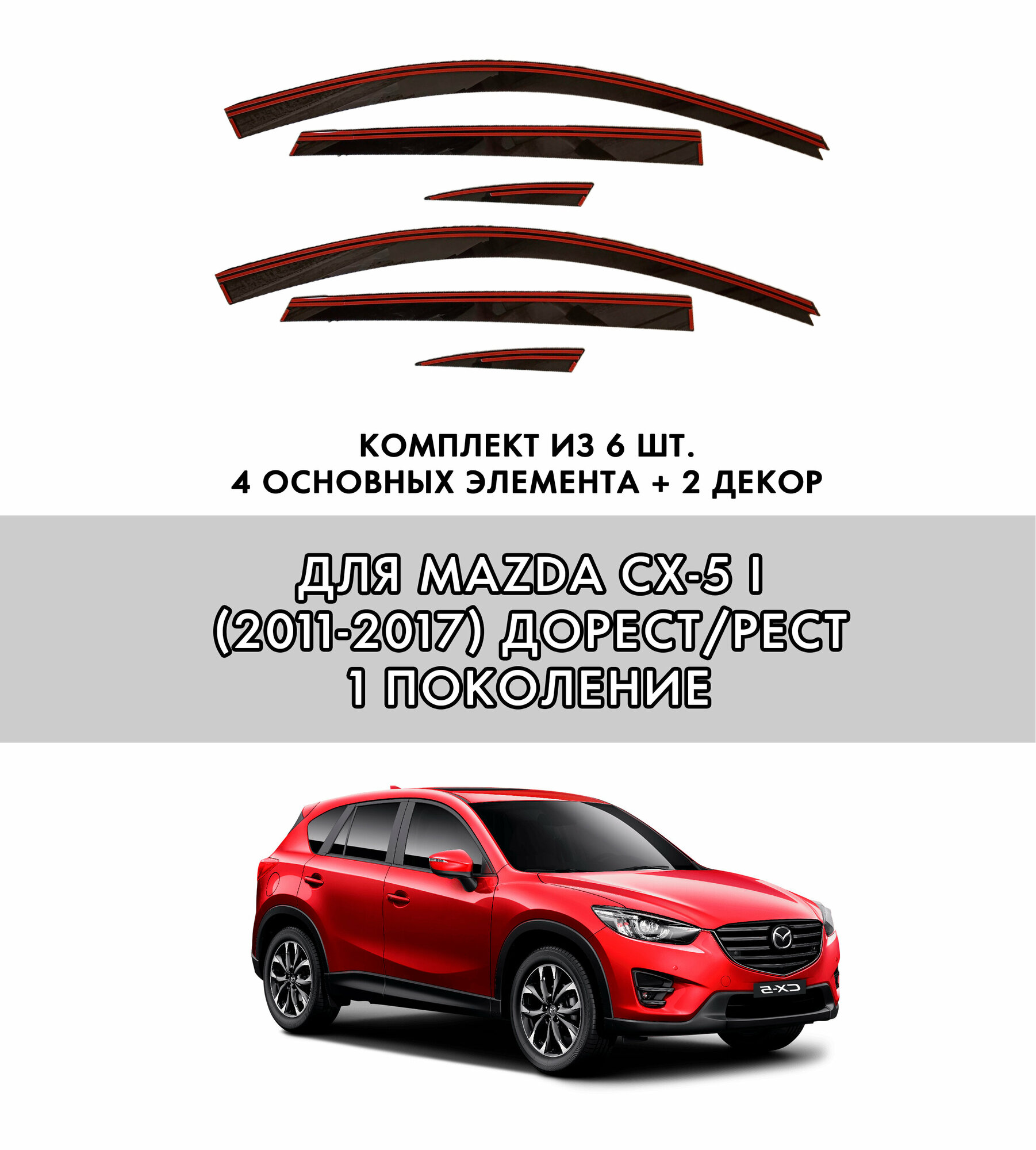 2D дефлекторы для окон Mazda CX-5 1 (2011-2017) / Ветровики для окон Мазда ЦХ-5 1 поколение. Комплект 6 шт.: сравнение цен, характеристики, фото, актуальное наличие и цены.