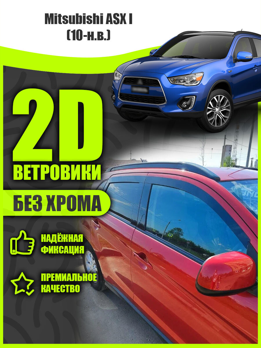 Купить 2D дефлекторы для окон Mitsubishi ASX (2010-н. в.) / Ветровики для Митсубиси АСХ. Комплект 4 шт. с доставкой по всей России.