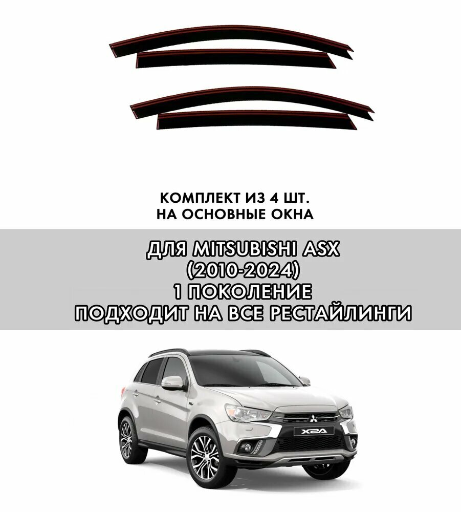 2D дефлекторы для окон Mitsubishi ASX (2010-н. в.) / Ветровики для Митсубиси АСХ. Комплект 4 шт.: сравнение цен, характеристики, фото, актуальное наличие и цены.