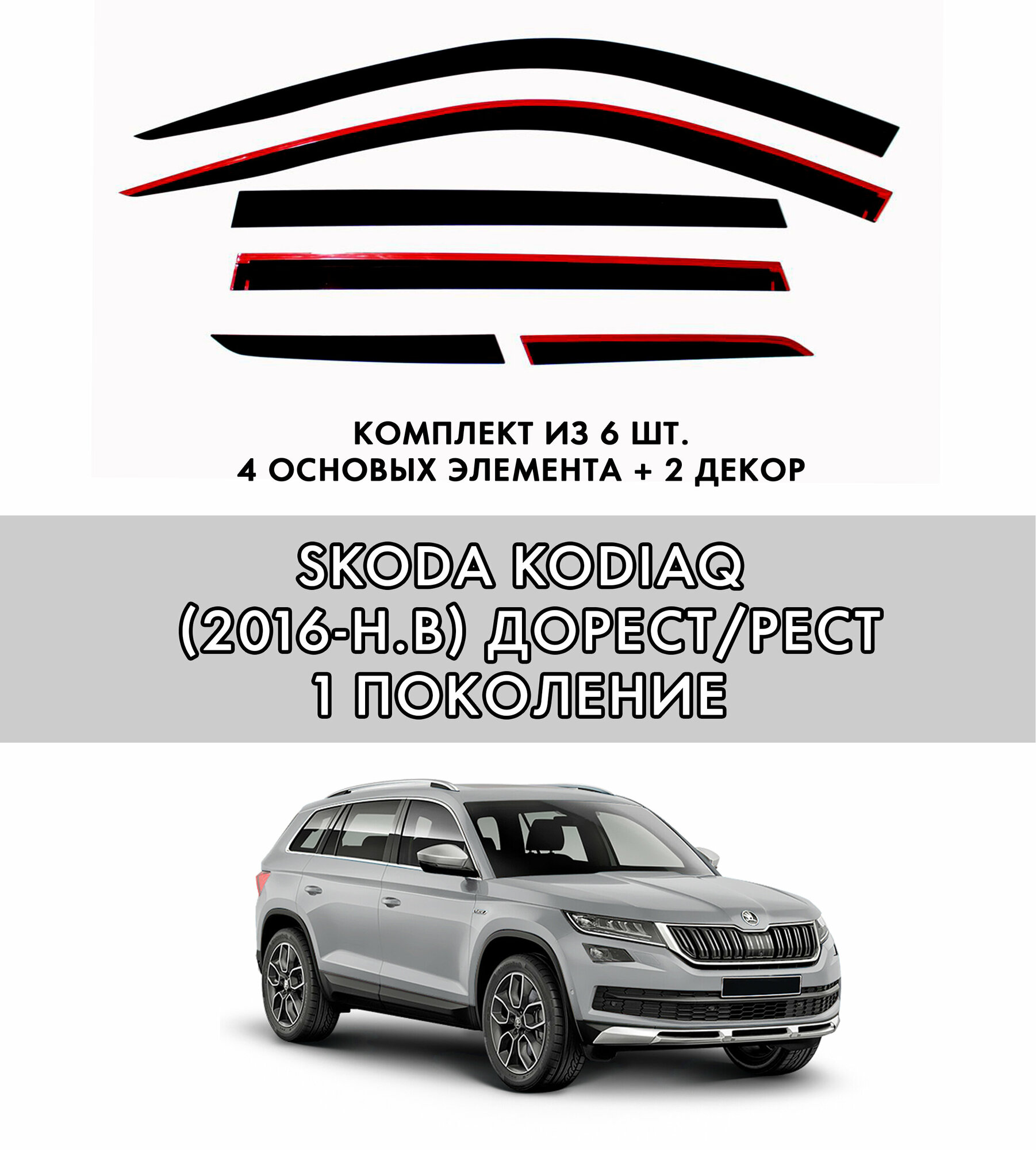 2D дефлекторы для окон Skoda Kodiaq (2015-н. в) 1 поколение / Ветровики для Шкода Кодиак. Комплект 6 шт: сравнение цен, характеристики, фото, актуальное наличие и цены.