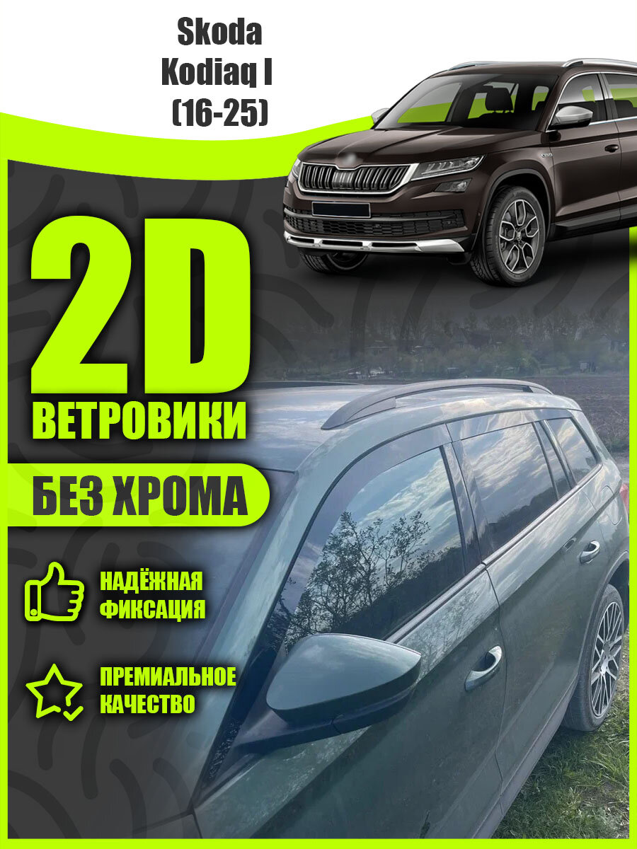 Купить 2D дефлекторы для окон Skoda Kodiaq (2015-н. в) 1 поколение / Ветровики для Шкода Кодиак. Комплект 6 шт с доставкой по всей России.