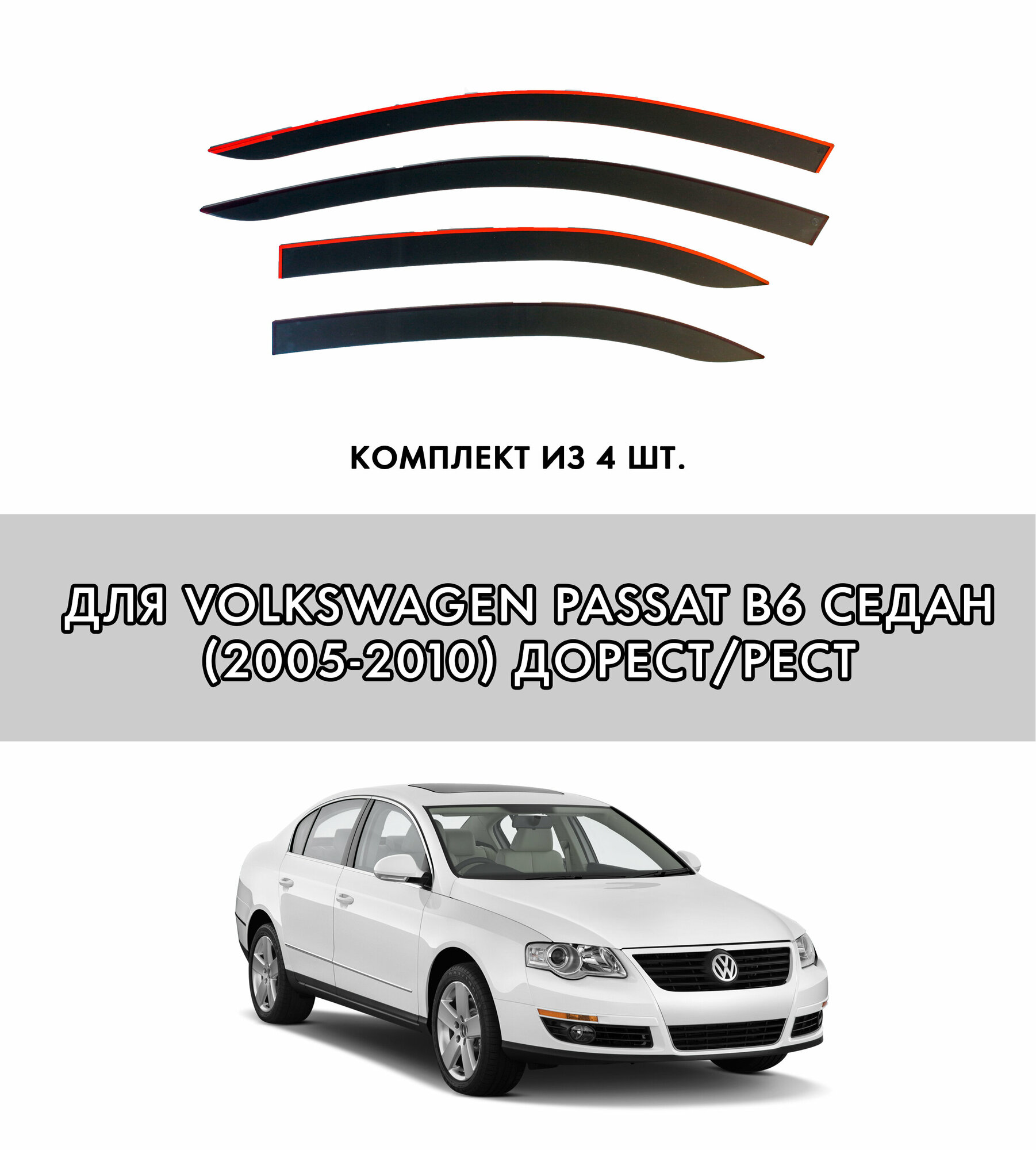 2D дефлекторы для Volkswagen Passat B6 (2005-2010) седан / Ветровики для Фольксваген Пассат Б6 седан. Комплект 4 шт.: сравнение цен, характеристики, фото, актуальное наличие и цены.