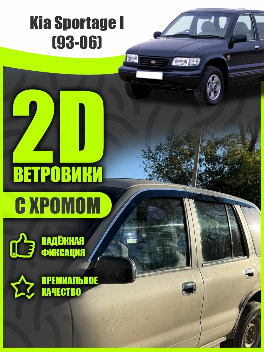Купить 2D дефлекторы с хромом для Kia Sportage 1 (1993-2006) / Ветровики на Киа Спортейдж 1 поколение. Комплект 6 шт. с доставкой по всей России.