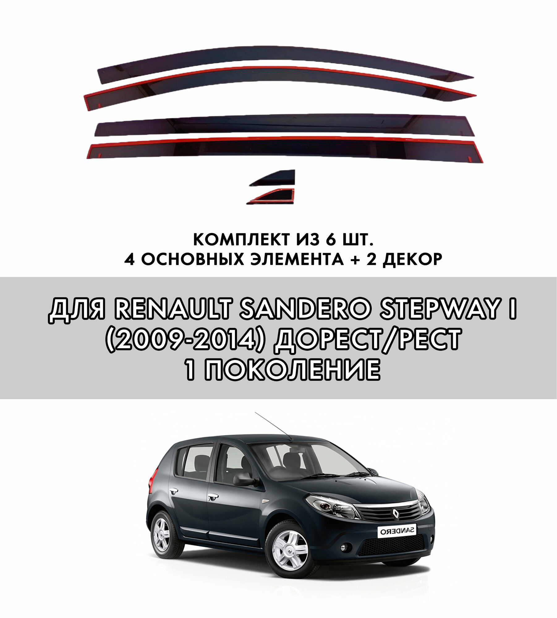 2D дефлекторы с хромом для окон Renault Sandero Stepway 1 (2009-2014) / Ветровики Рено Сандеро Степвей. Комплект 6 шт.: сравнение цен, характеристики, фото, актуальное наличие и цены.