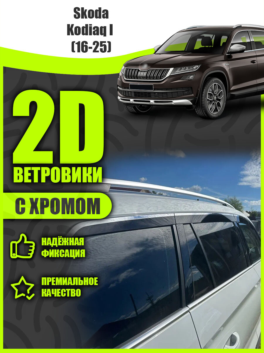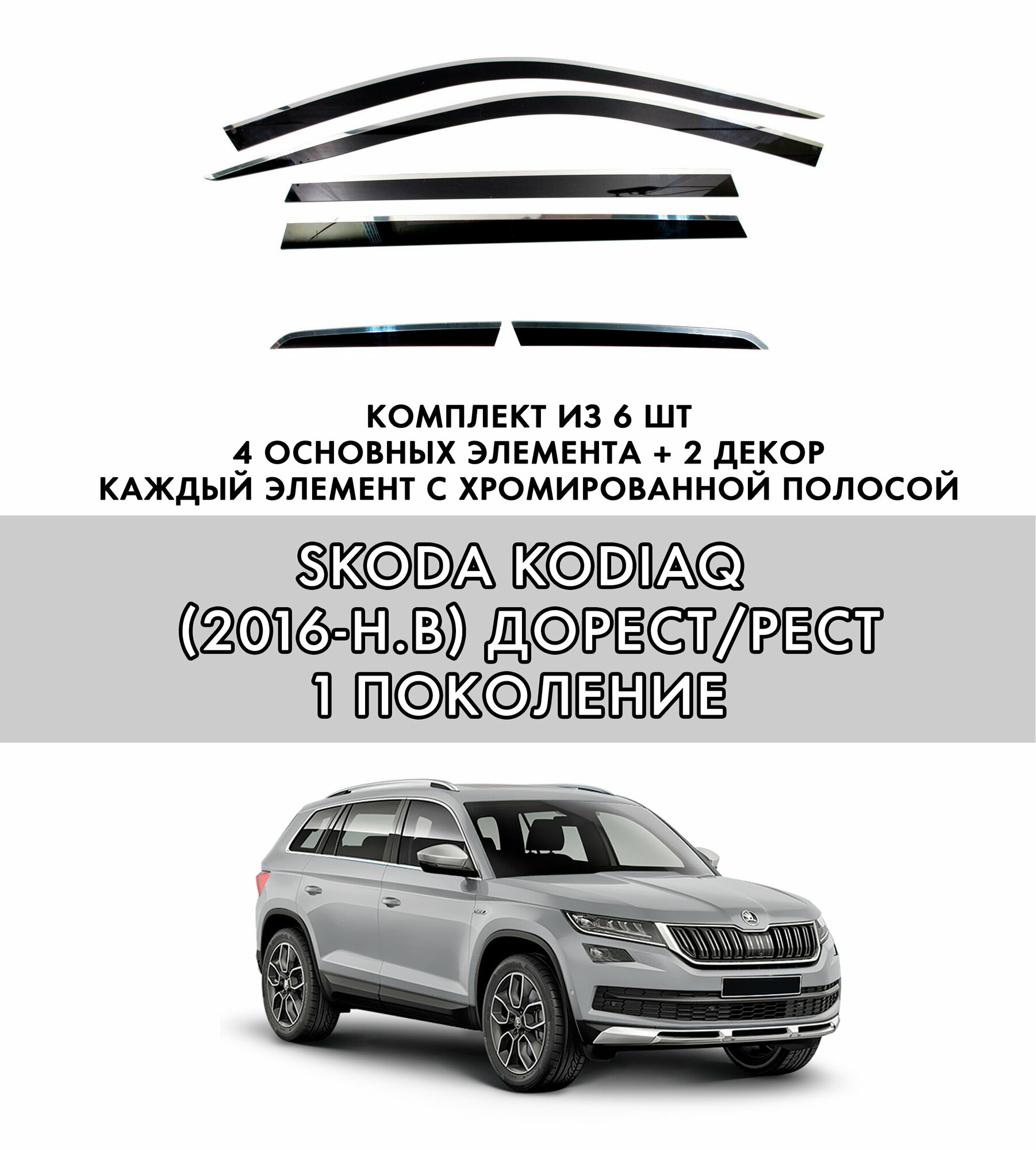 2D дефлекторы с хромом для окон Skoda Kodiaq 1 (2015-н. в) / Ветровики для Шкода Кодиак. Комплект 6 шт.: сравнение цен, характеристики, фото, актуальное наличие и цены.