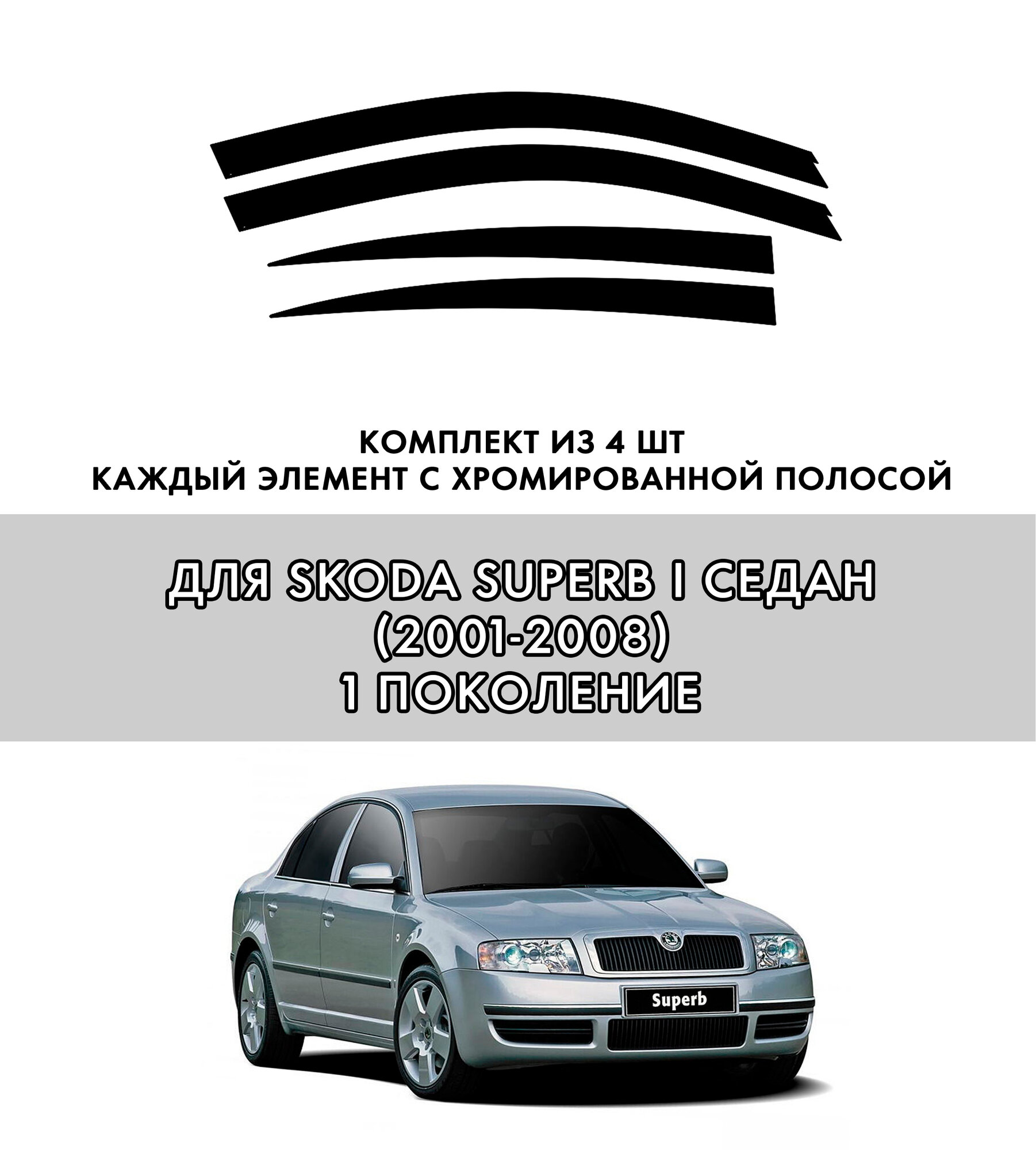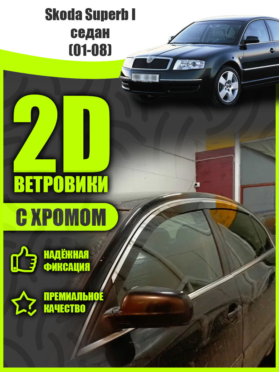 Купить 2D дефлекторы с хромом для Skoda Superb 1 седан (2001-2008) 1 поколение / Ветровики на Шкода Суперб 1. Комплект 4 шт. с доставкой по всей России. 2D дефлекторы с хромом для Skoda Superb 1 седан (2001-2008) 1 поколение / Ветровики на Шкода Суперб 1. Комплект 4 шт.: сравнение цен, характеристики, фото, актуальное наличие и цены.