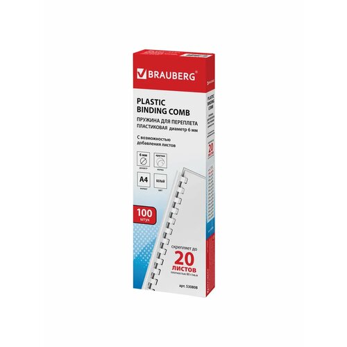 В комплекте 2 шт Пружины пластиковые для переплета, комплект 100 шт, 6 мм, белые, BRAUBERG
