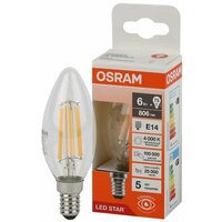 Купить 2шт/уп. Лампа LED Свечка 6Вт 220-240В E14 806Лм 4000К Угол 300 град. d 37mm h 105mm Филаментная Стекло Свет Дневной белый Osram, уп. 2шт с доставкой по всей России.