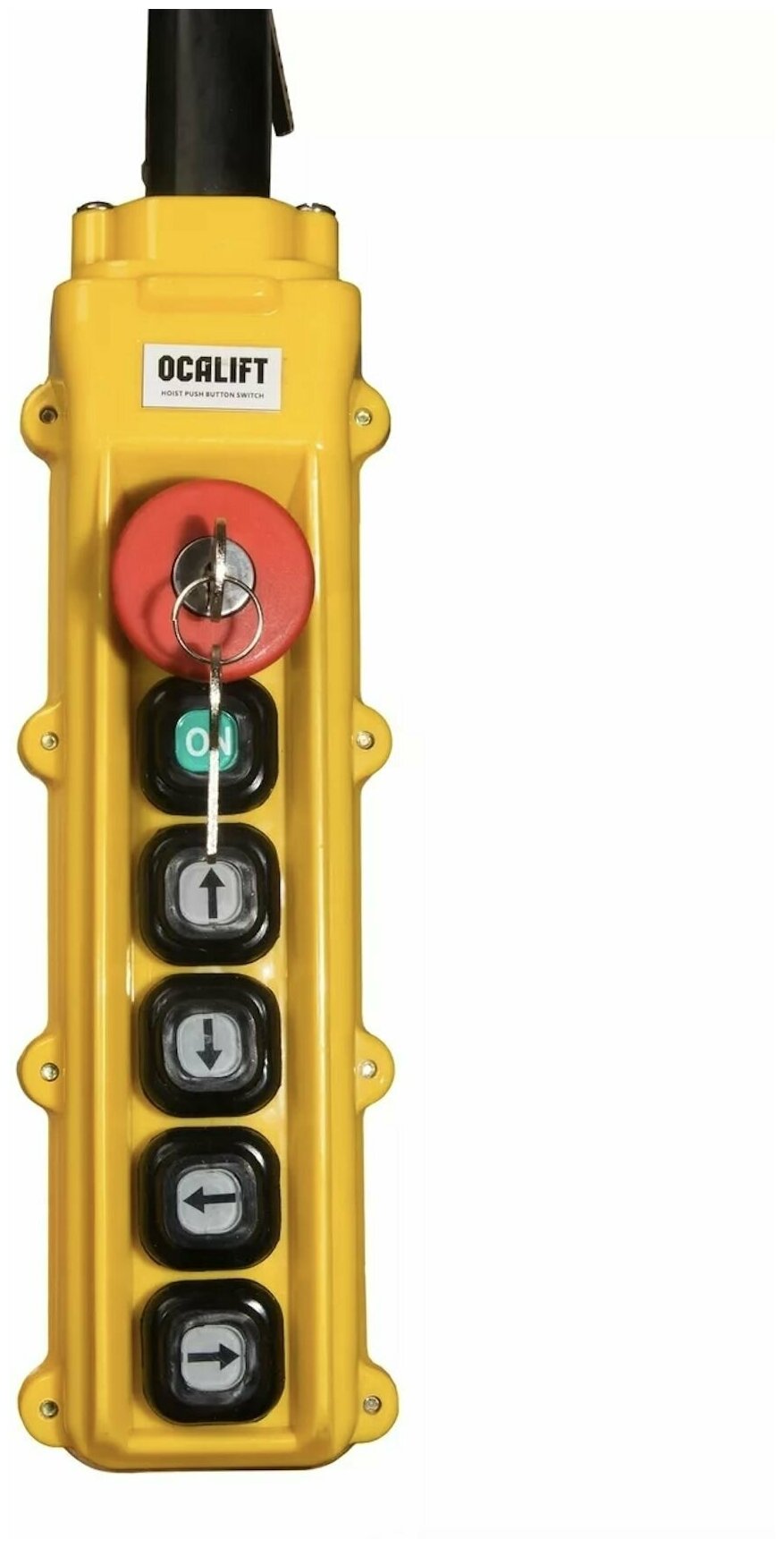 6 кнопок управления + зелёная пуск + красная аварийная кнопка + ключ