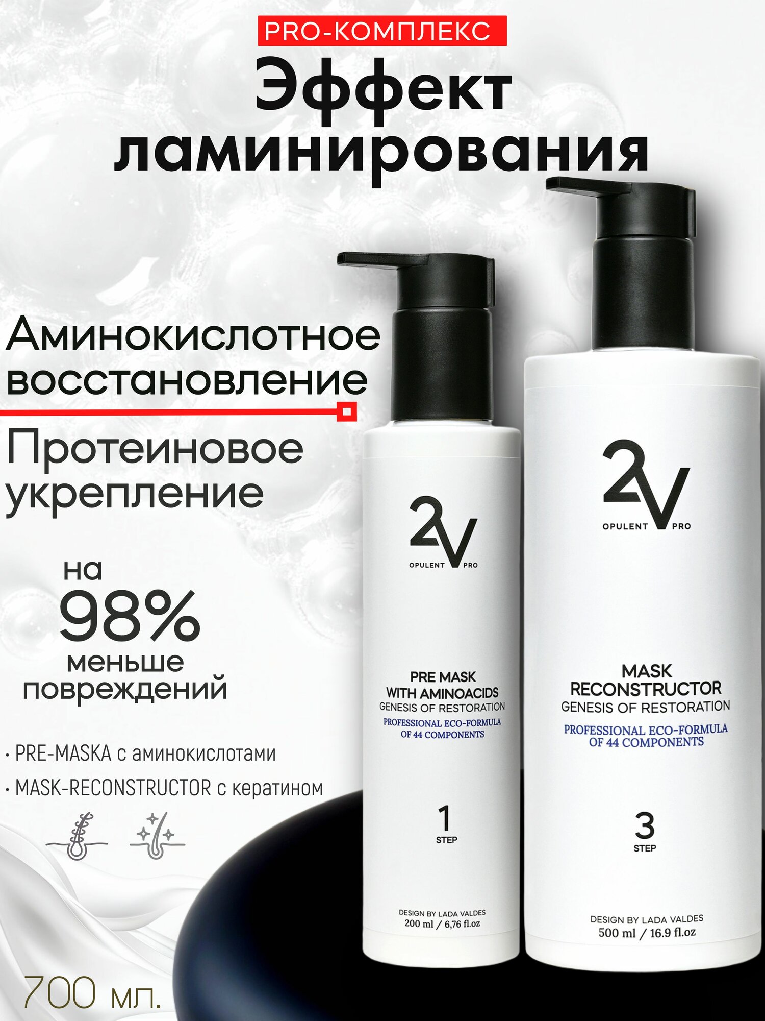 2V Аминокислотная маска-подложка, Маска для волос с кератином ламинирующая. Набор холодного восстановления.