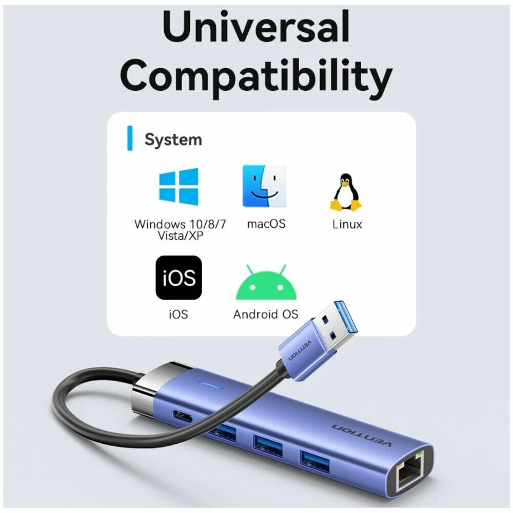 3-port USB3.0 Hub Vention TGFSB (3x USB 3.0/1x Type C/RJ45): сравнение цен, характеристики, фото, актуальное наличие и цены.