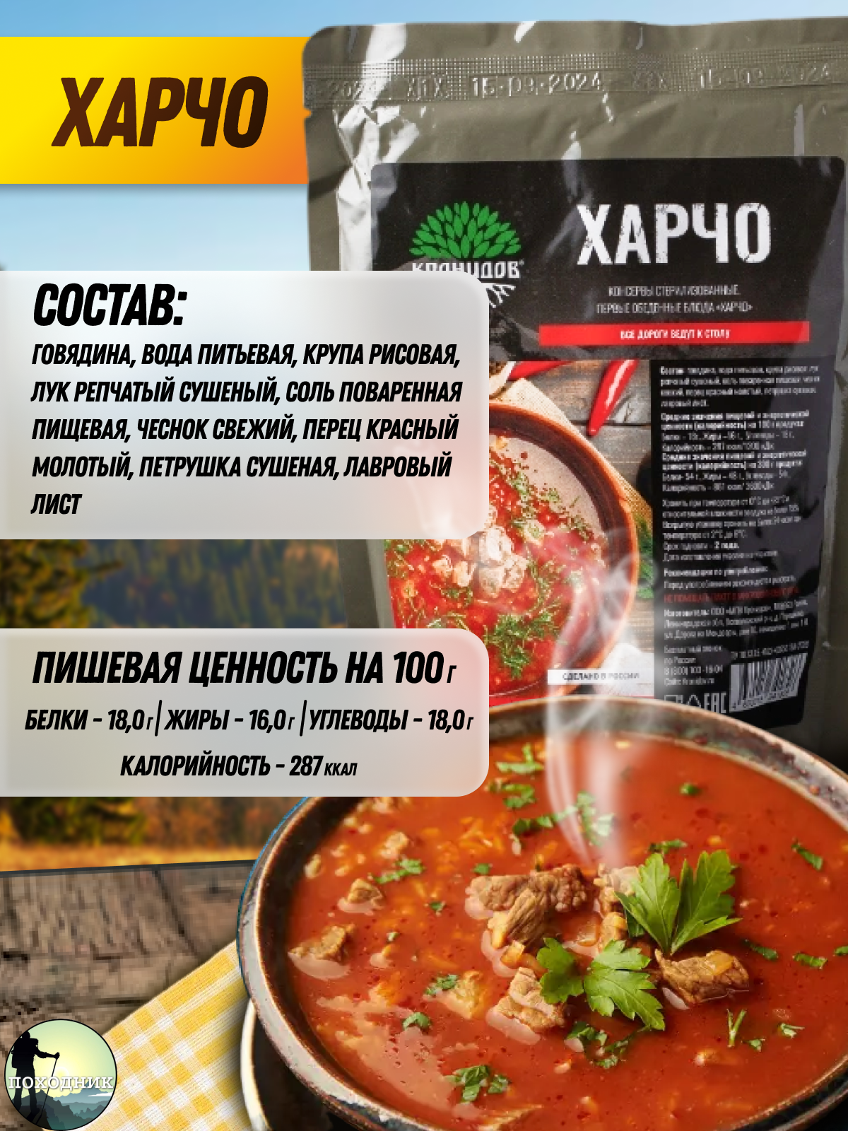 3 шт. Кронидов готовое блюдо Харчо, 300 г, собой / в поход / готовая еда / в поезд / в дорогу: сравнение цен, характеристики, фото, актуальное наличие и цены.