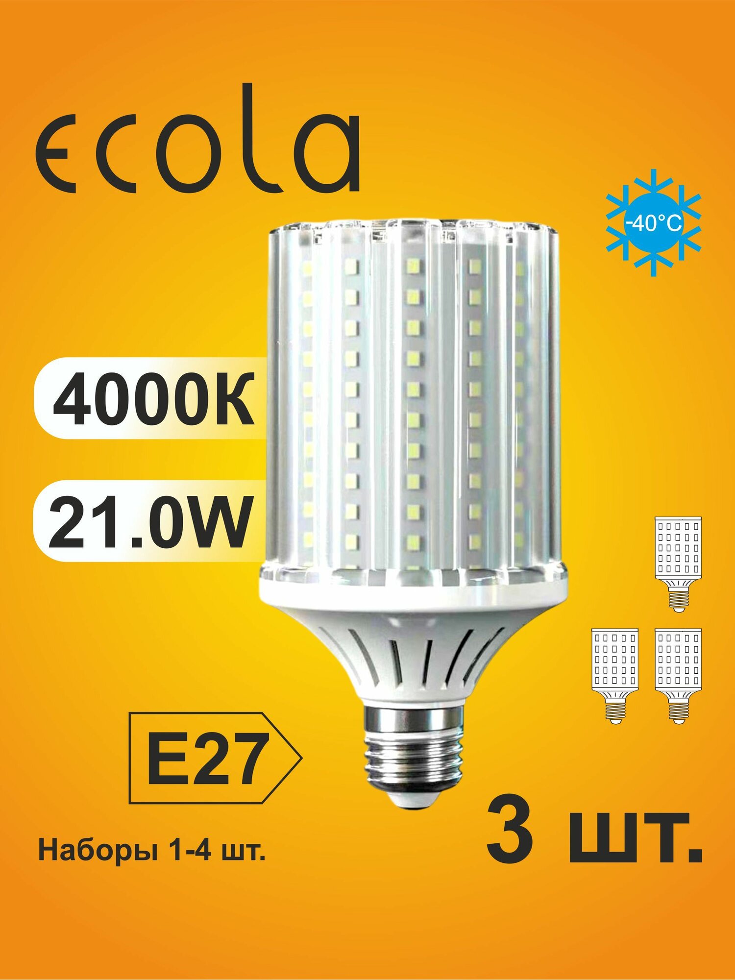 3 шт. Лампа Экола кукуруза E27, Ecola LED светодиодная 21W, 4000K естественно-белый свет, 220V: сравнение цен, характеристики, фото, актуальное наличие и цены.