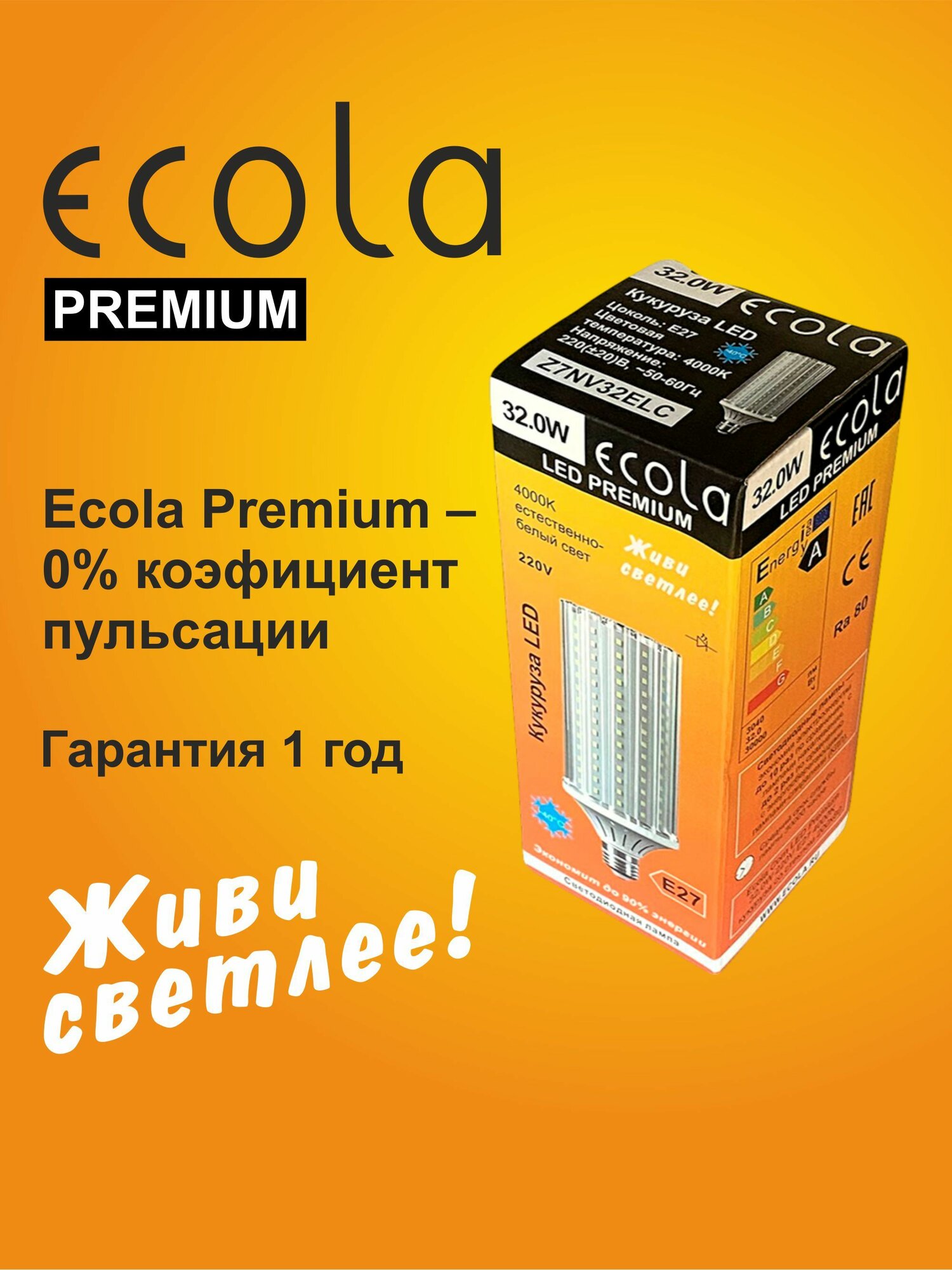 3 шт. Лампа Экола кукуруза E27, Ecola LED светодиодная 32W, 4000K естественно-белый свет, 220V: сравнение цен, характеристики, фото, актуальное наличие и цены.