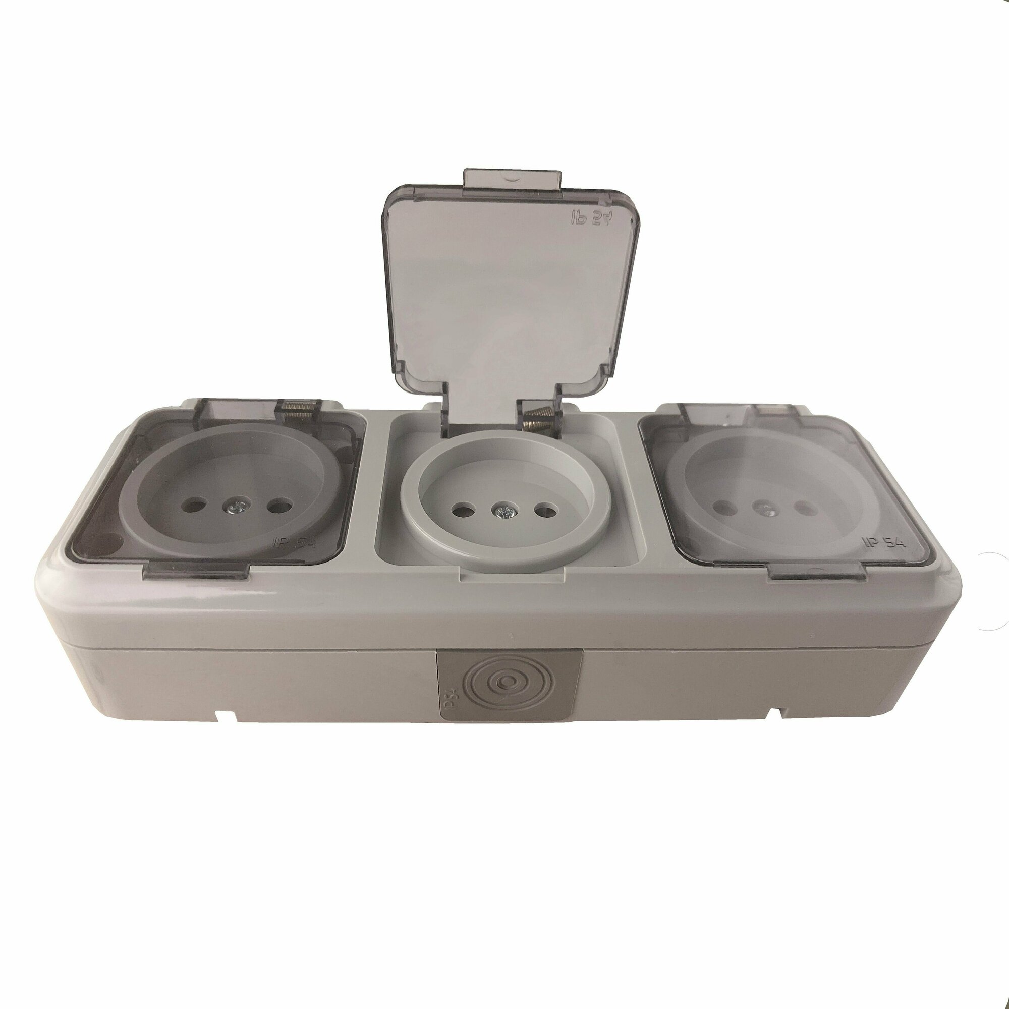 3 шт. Розетка Наружная Тройная Без Заземления + Прозрачная Крышка Серый IP54 16A 220v Пралеска Bylectrica: сравнение цен, характеристики, фото, актуальное наличие и цены.