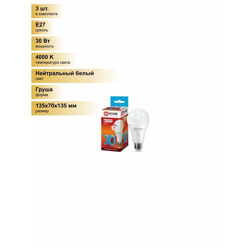 (3 шт.) Светодиодная лампочка ASD/inHome VC ЛОН A70 E27 30W(2700lm) 4000К 4K 135×70 (без пульсации) 4141 Нейтральный белый. Цоколь E27: сравнение цен, характеристики, фото, актуальное наличие и цены.