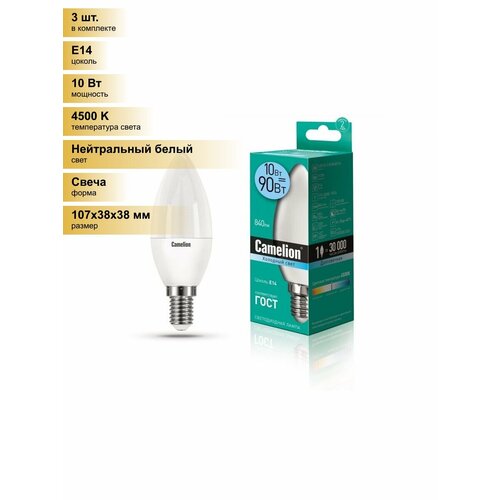 (3 шт.) Светодиодная лампочка Camelion Свеча E14 10W(840lm 220°) 4500K 4K матов. 107×38 пластик LED10-C35/845/E14 Нейтральный белый. Цоколь E14: сравнение цен, характеристики, фото, актуальное наличие и цены.