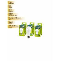(3 шт.) Светодиодная лампочка Ergolux ЛОН A65 E27 20W(2000lm 270°) 6500K 6K матовая 134×65 пластик/алюм. LED-A65-20W-E27-6K Холодный белый. Цоколь E27: сравнение цен, характеристики, фото, актуальное наличие и цены.