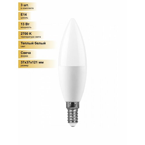 (3 шт.) Светодиодная лампочка Feron свеча C37 E14 13W(1080lm) 2700K 2K матовая 121×37 LB-970 38107 Теплый белый. Цоколь E14: сравнение цен, характеристики, фото, актуальное наличие и цены.