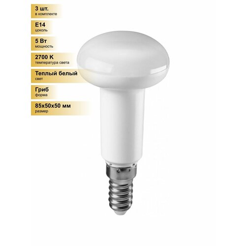 (3 шт.) Светодиодная лампочка онлайт R50 E14 5W(360Lm) 2700K 2K 85×50 ОLL-R50-5-230-2.7K-E14 71651 Теплый белый. Цоколь E14: сравнение цен, характеристики, фото, актуальное наличие и цены.