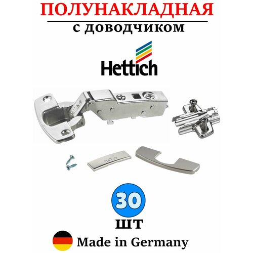 - Состав комплекта следующий: Петля полунакладная c доводчиком Hettich Sensys - 30 шт, монтажная планка с евровинтами - 30 шт, заглушка на плечо петли с логотипом Hettich - 30 шт, заглушка на чашку - 30 шт, саморезы 3,5х16мм - 60 шт. Производство Германия.