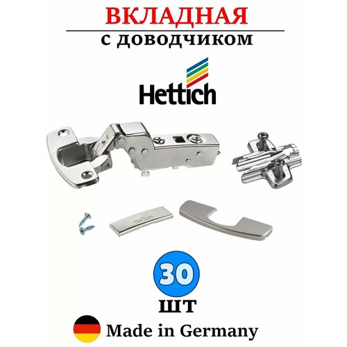 - Состав комплекта следующий: Петля вкладная c доводчиком Hettich Sensys - 30 шт, монтажная планка с евровинтами - 30 шт, заглушка на плечо петли с логотипом Hettich - 30 шт, заглушка на чашку - 30 шт, саморезы 3,5х16мм - 60 шт. Производство Германия.