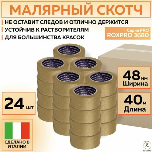 305839 Термостойкая малярная лента RoxelPro ROXPRO 3680, бумажный скотч коричневый, 48 мм х 40 м, 24 шт роликов/упак.: сравнение цен, характеристики, фото, актуальное наличие и цены.