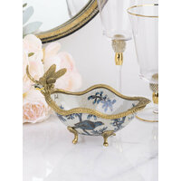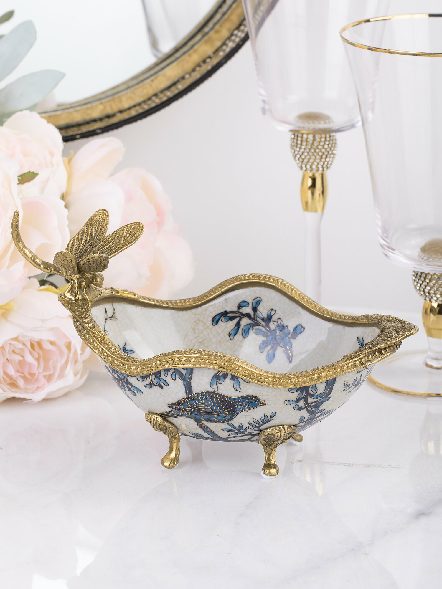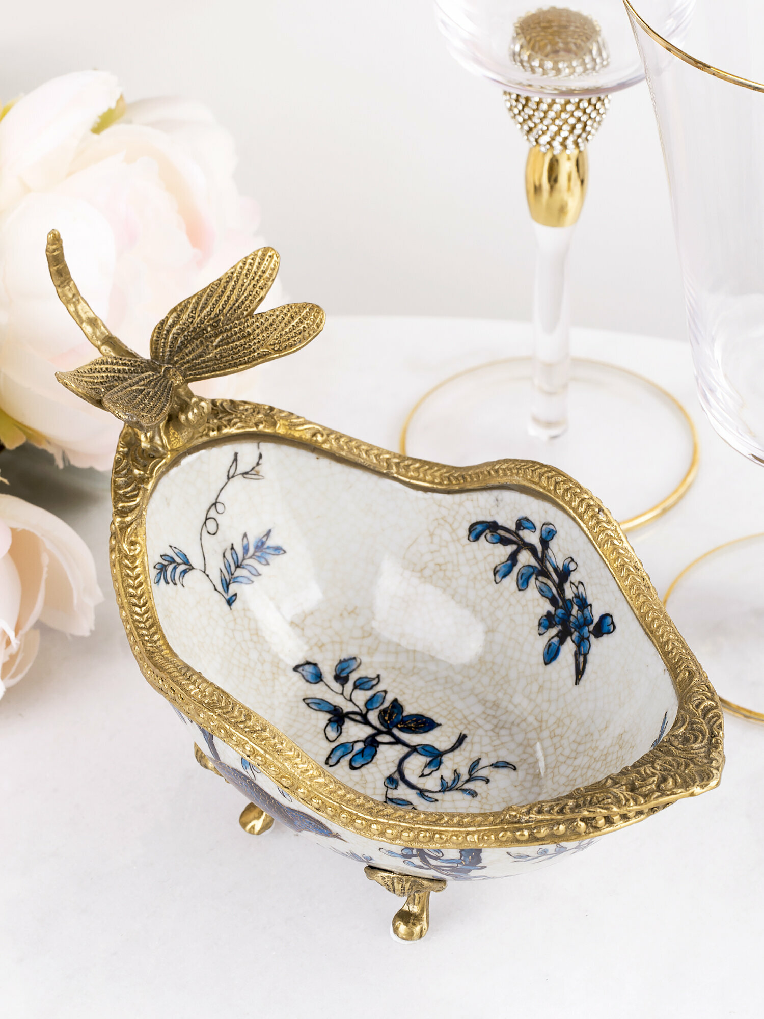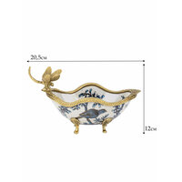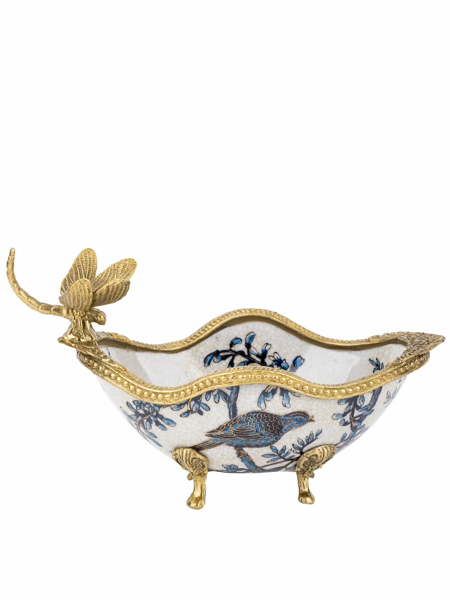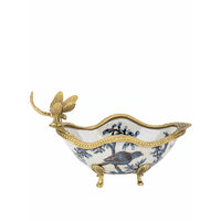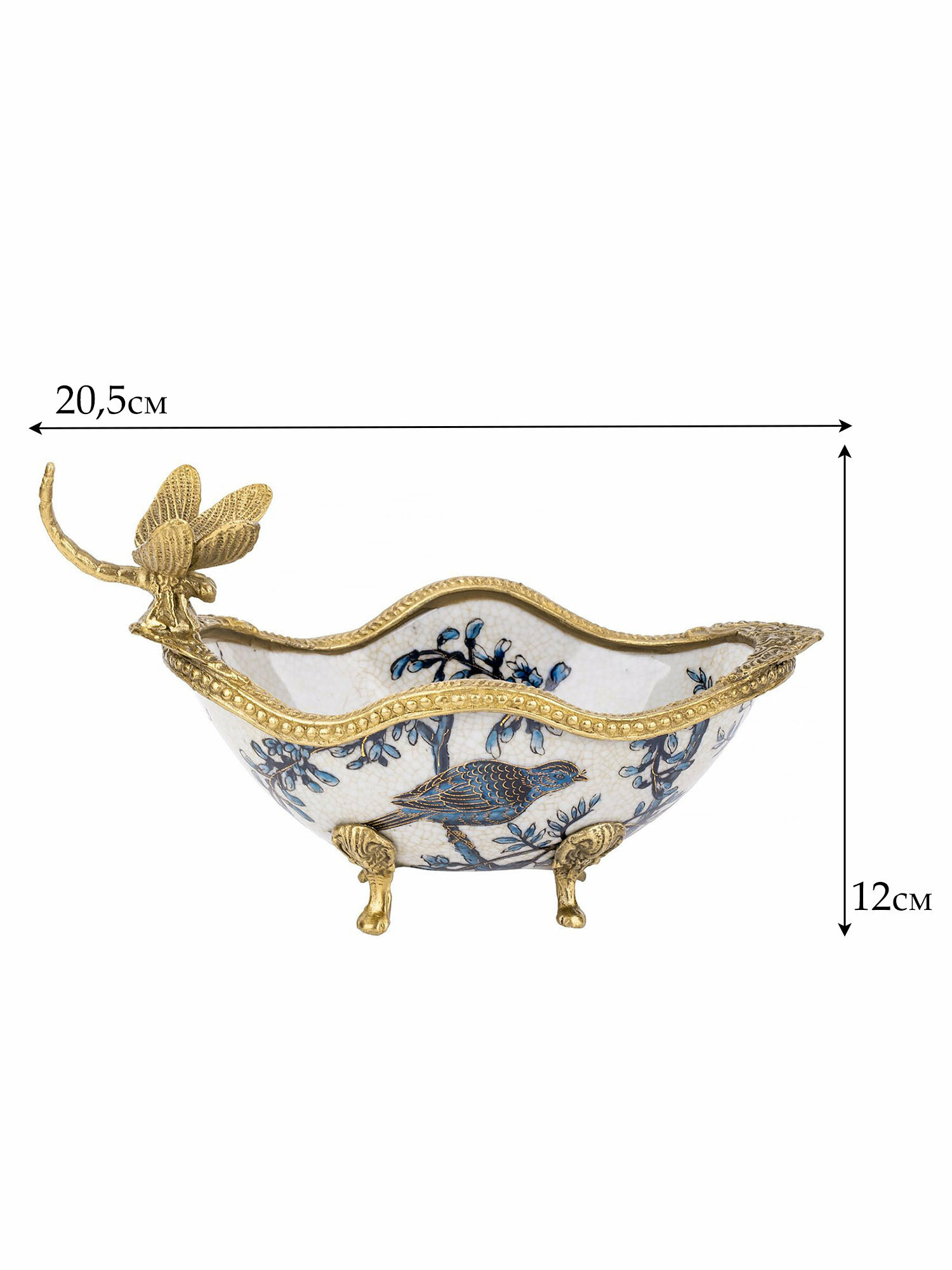 Чаша со стрекозой, выполненная из фарфора с бронзовыми элементами. Уникальное изделие ручной работы. При производстве этих художественных изделий из фарфора с бронзой используются вековые традиции китайских мастеров. Видимые трещинки (кракелюры) делаются по уникальной технологии, что придает более благородный вид старинного изделия. Вес изделия: 0,583кг. Размер: 21х12х12см. Материал: Фарфор, бронза. Производитель: Китай.