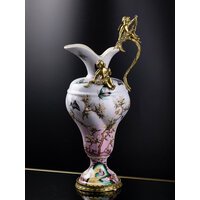 Кувшин, выполненный из фарфора с бронзовыми элементами. Уникальное изделие ручной работы. При производстве этих художественных изделий из фарфора с бронзой используются вековые традиции китайских мастеров. Видимые трещинки (кракелюры) делаются по уникальной технологии, что придает более благородный вид старинного изделия. Вес изделия: 2,08кг. Размер: 19х16х45см. Материал: Фарфор, бронза. Производитель: Китай.
