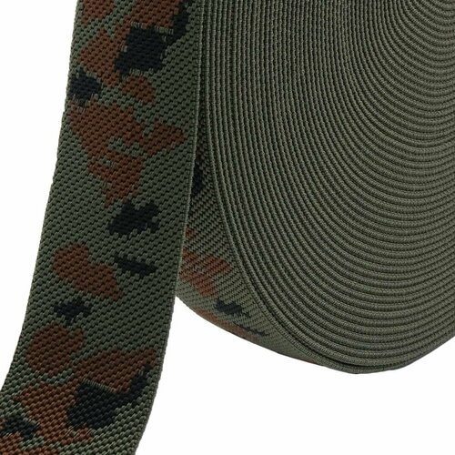Купить 3340 Тесьма тканая эластичная для подтяжек Камуфляж 35 гр/м, эластичность 100%, 40мм*25м с доставкой по всей России.