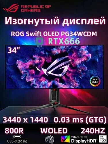 34″ Монитор ROG SWIFT PG34WCDM, 1300 кд/м2, 3440×1440, 240 Гц, 0.03 мс, WOLED, черный: сравнение цен, характеристики, фото, актуальное наличие и цены.