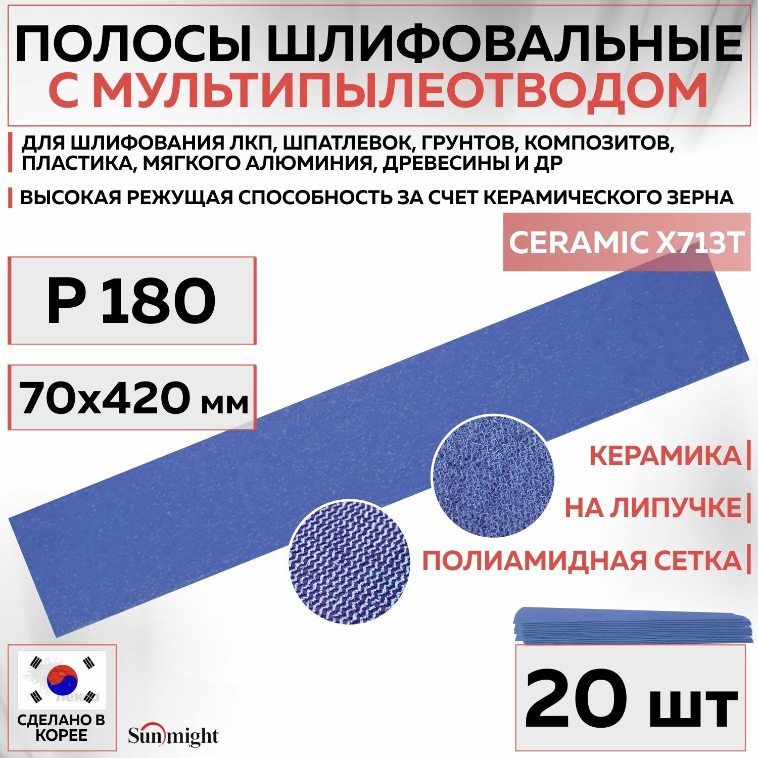 Купить 35310 Шлифовальные абразивные полосы SUNMIGHT SUN NET CERAMIC X713T, сетка с мультипылеотводом, 70 x 420 мм, P180, 20 шт полос/упак. с доставкой по всей России.