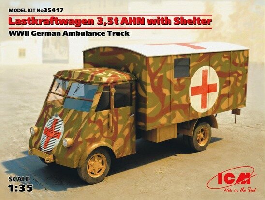 Купить 35417 ICM Германский санитарный автомобиль Lastkraftwagen 3.5 t AHN with Shelter Масштаб 1/35 с доставкой по всей России. 35417 ICM Германский санитарный автомобиль Lastkraftwagen 3.5 t AHN with Shelter Масштаб 1/35: сравнение цен, характеристики, фото, актуальное наличие и цены.