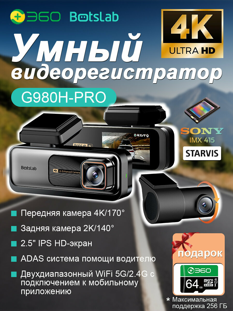 360 Botslab G980Hpro Black умный Автомобильный видеорегистратор
