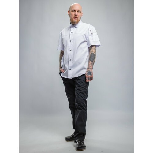 362W Стиль прямиком с улиц. Профессиональный поварской китель из ткани рип-стоп. Ткань обладает повышенной прочностью на разрыв. Мелкие порезы и дырки не могут свободно разойтись благодаря усиленной нити. Профессиональная высокопрочная ткань повышенной плотности. Материал изготавливается путем тугого переплетения нитей, с дополнительным использованием армирующих нитей, которые придают узнаваемый рисунок поверхности ткани. Благодаря армирующим нитям, материал приобретает отличные прочностные характеристики. Устойчив к протиранию и разрывам. Не теряет форму даже после большого количества стирок. Модель прямого кроя, поэтому подойдёт для любой комплекции. Воротник рубашечного типа. Пата на воротнике сзади для фиксации фартука. Короткий рукав. Карман с фирменным логотипом PITERPROF на рукаве для пинцета или ручки. Брендированные нержавеющие кнопки.