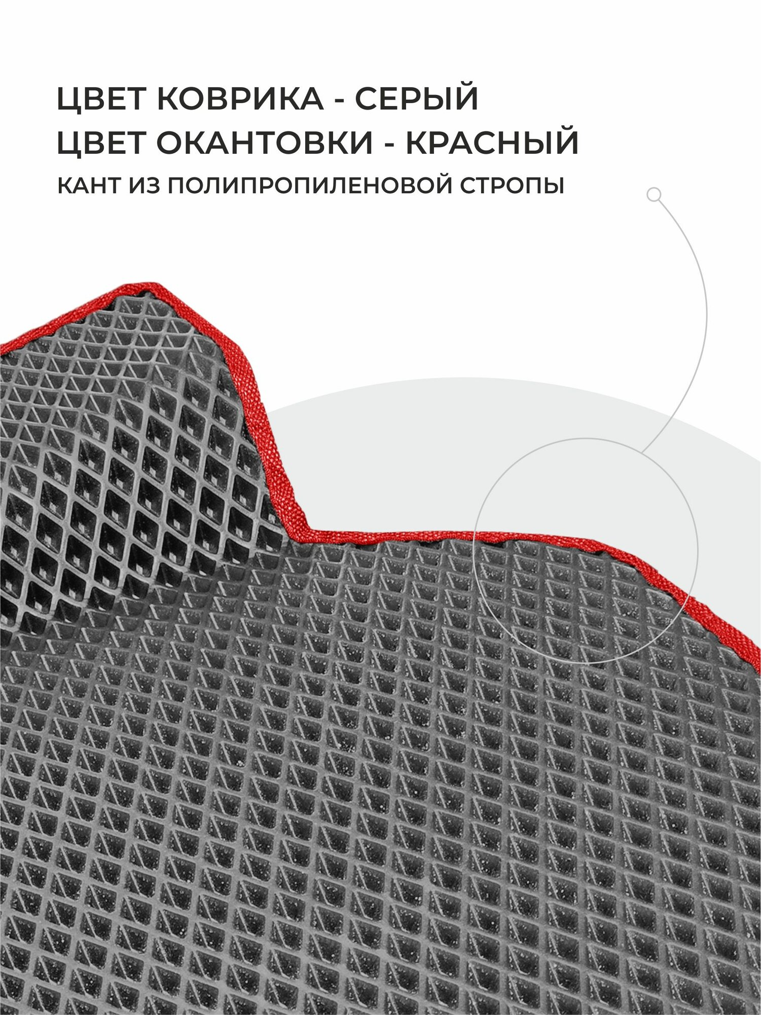 Ячейки в виде Ромба задерживают воду и грязь, даже при наклоне коврика. Не пропускают воду. Толщина материала 1 см.