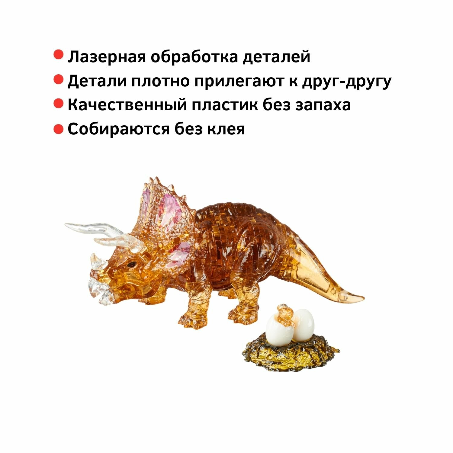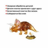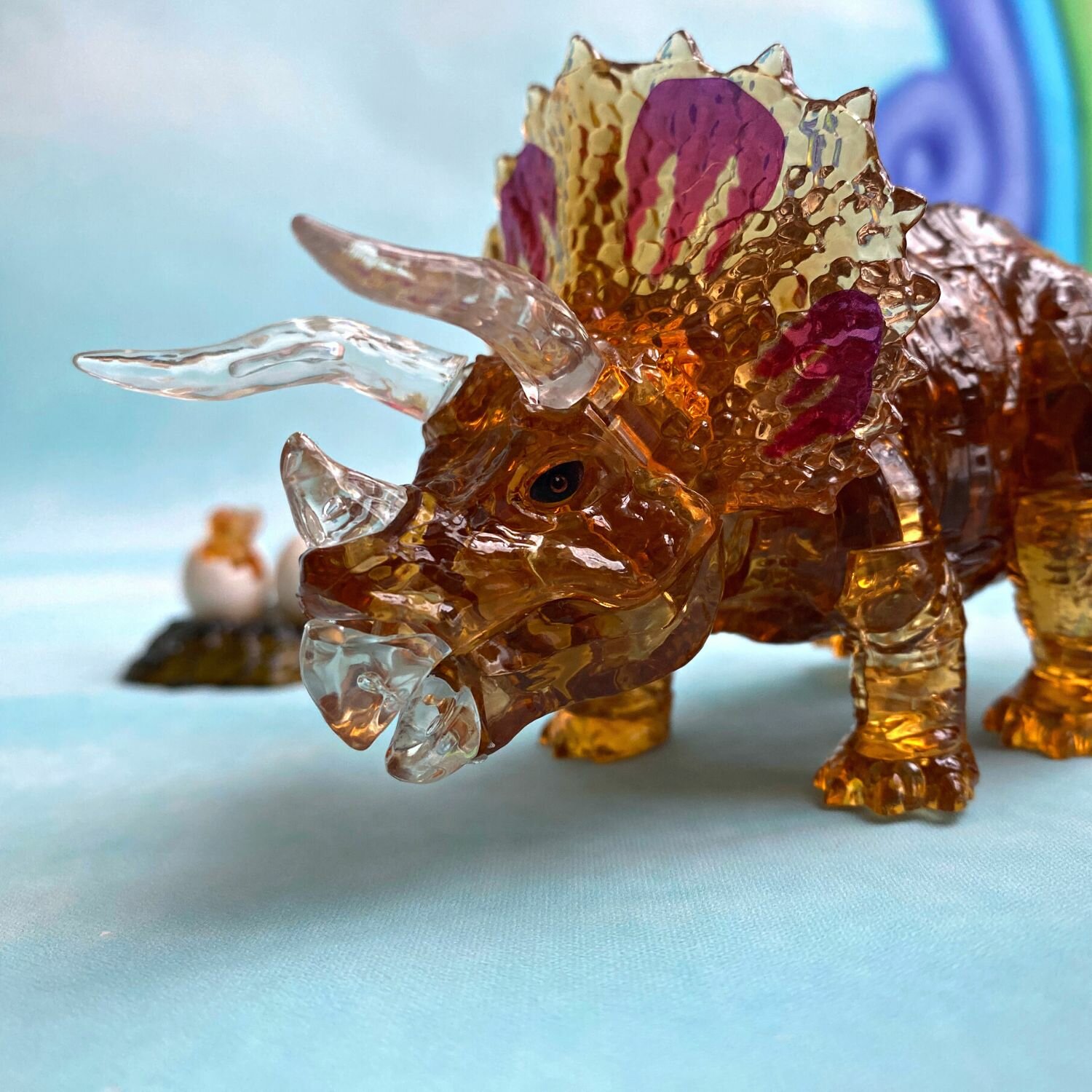 Рога трицератопса выглядят устрашающе, а ведь этот динозавр был травоядным! Соберите трицератопса с детенышем из 61 детали и пополните свою коллекцию динозавров. В наборе есть наклейки, чтобы готовая фигура выглядела наиболее натуралистично. Полупрозрачные детали создают уникальный эффект: кажется, будто динозавр сделан из янтаря.