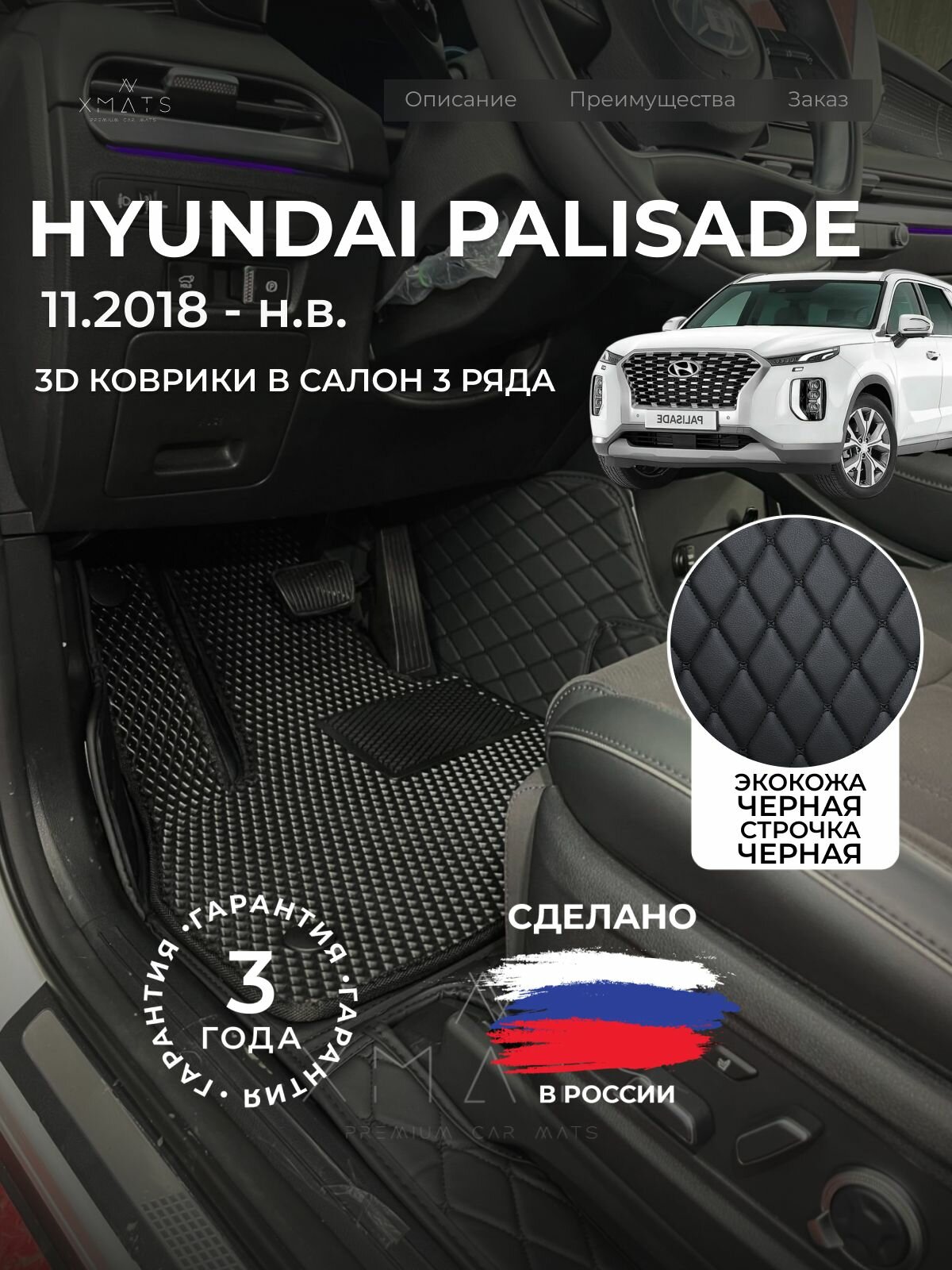 Купить 3D коврики из экокожи для Hyundai Palisade LX2 на 3 ряда (1 п-е, 2018 — н. в) / 3Д коврики из экокожи для Хендай Палисад LX2 на 3 ряда (1 п-е, 2018 — н. в) с доставкой по всей России.