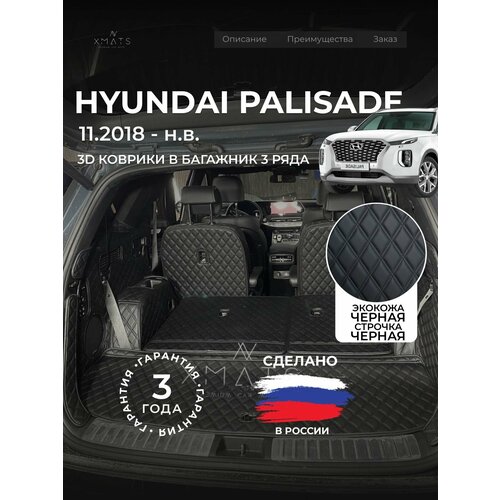 Купить 3D коврики из экокожи в багажник для Hyundai Palisade LX2 с капитанскими креслами (1 п-е, 2018 — н. в) / 3Д коврики из экокожи в багажник для Хендай Палисад с капитанскими креслами (1 п-е, 2018 — н. в) с доставкой по всей России.