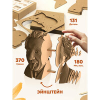 Можно подобрать персонажа в нашем магазине, который будет близок и интересен тому человеку, которому Вы подбираете сюрприз. И дети, и взрослые с удовольствием проведут время за сборкой оригинального конструктора головоломки. Подарочный набор также может стать прекрасным подарком для детей, которые хотят провести время за интересным занятием. Мальчики и девочки могут дополнить поделку раскрасив ее, а взрослые создать уникальный предмет декора. Вы сможете провести время с пользой в кругу семьи или близких, развивая свои навыки конструирования, моделирования, а так-же фантазию, улучшая мелкую моторику и пространственное мышление. Собранную фигуру можно собрать за несколько часов, без использования ножниц, после она не рассыпается как плоский пазл. Все детали 3D конструктора пронумерованы – с его сборкой легко справятся не только взрослые, но и дети, знакомые с последовательностью чисел. Бюст выполнен из экологического материала и состоит из множества картонных деталей различной формы и размера, которые легко соединяются между собой на деревянные стержни. В комплекте вы найдете подробную инструкцию, которая поможет Вам собрать конструктор скульптуру Albert Einstein.