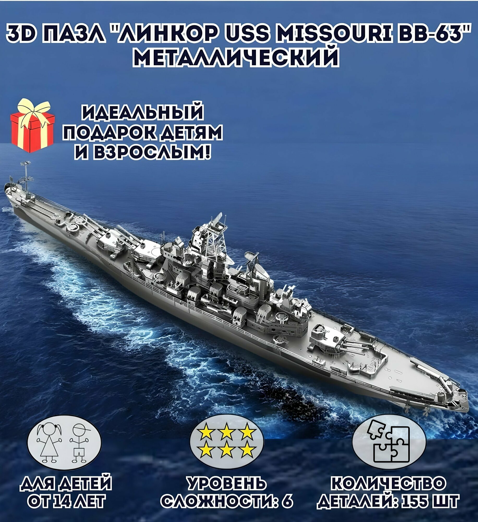3D пазл металлический «Линкор USS Missouri BB-63» Luxury Gift, сборная модель корабля: сравнение цен, характеристики, фото, актуальное наличие и цены.