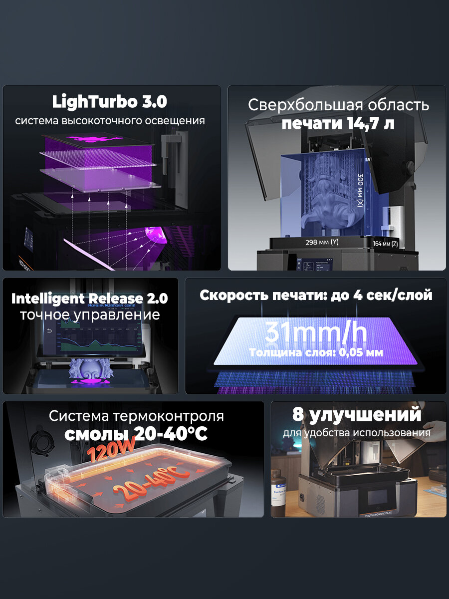 Купить 3D принтер Anycubic Photon Mono M7 MAX,Объем сборки 14,7 л,8 оптимизаций с доставкой по всей России.