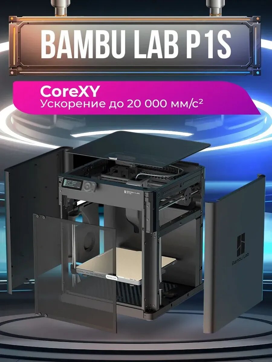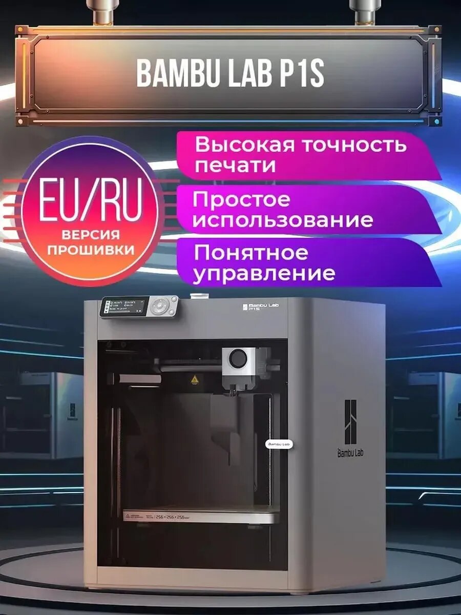 Купить 3D принтер Bambu Lab P1S. Версия EU. Закрытый корпус, С камерой, 256×256×256 с доставкой по всей России.