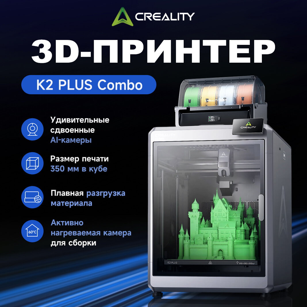 Купить 3д принтер Creality K2 Plus Combo, 16 цветов, AI-камера, 350×350×350 мм, для профессионалов, 3D принтер с доставкой по всей России.