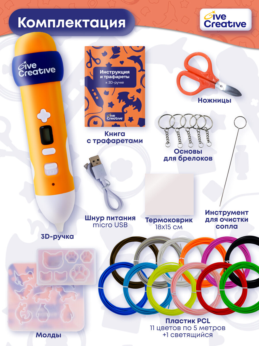 3Д ручка / 3D ручка беспроводная для детей низкотемпературная Give Creative, с набором пластика и молдами: сравнение цен, характеристики, фото, актуальное наличие и цены.