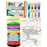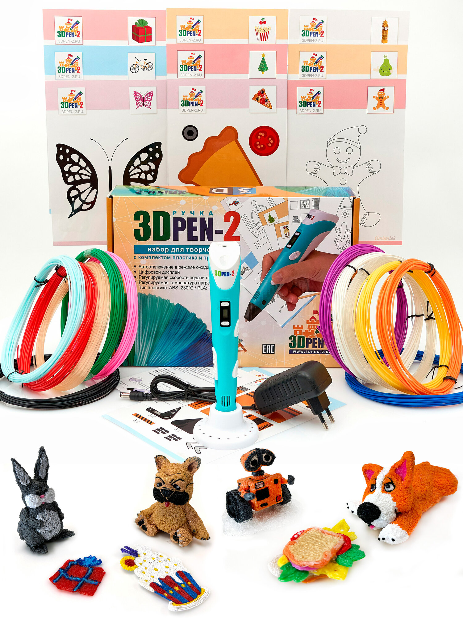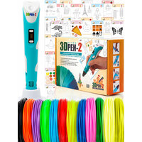 Купить 3D ручка 3DPEN-2 (цвет: голубой) с набором пластика PLA 12 цветов по 10 метров и набором трафаретов с доставкой по всей России.