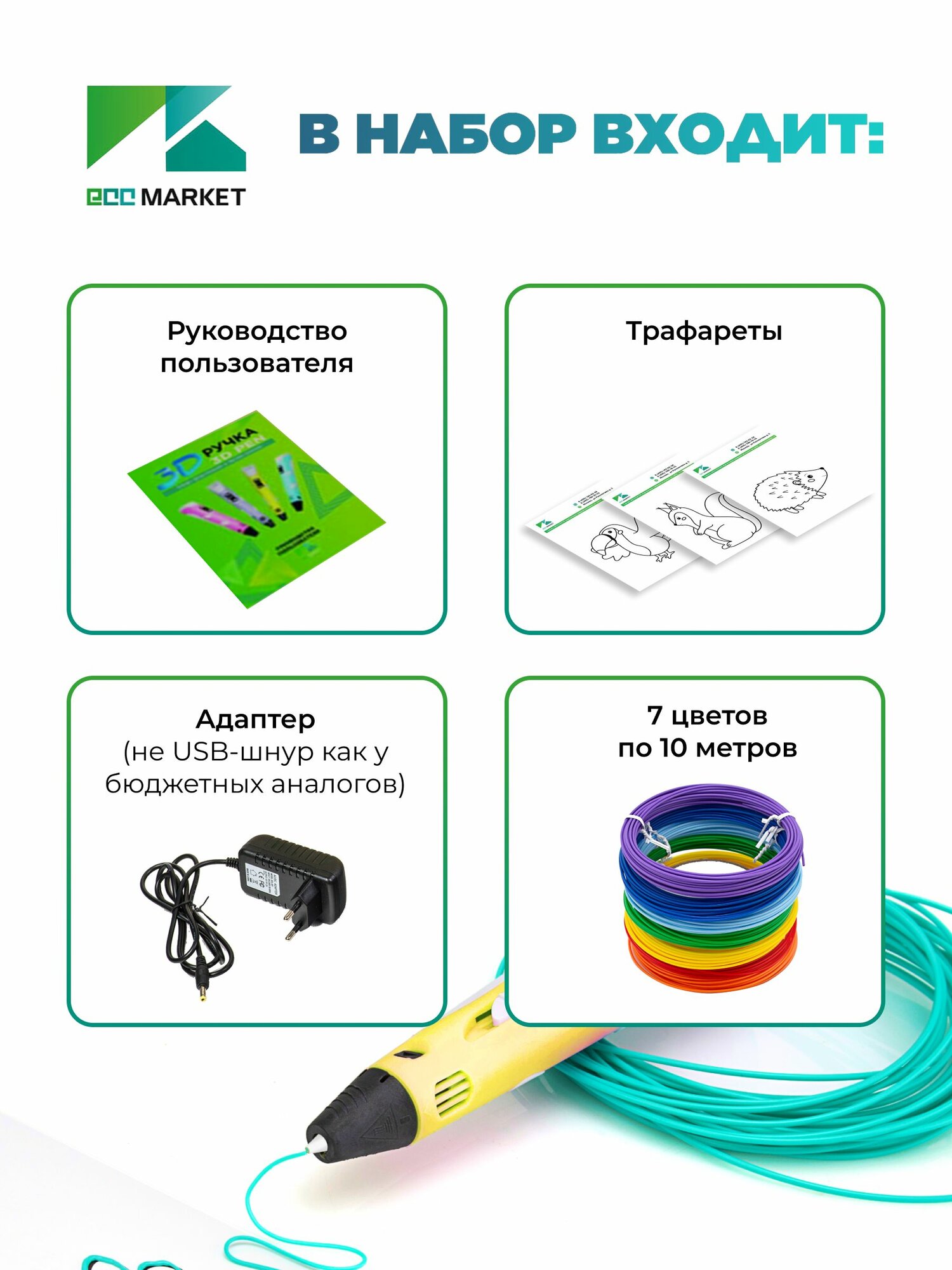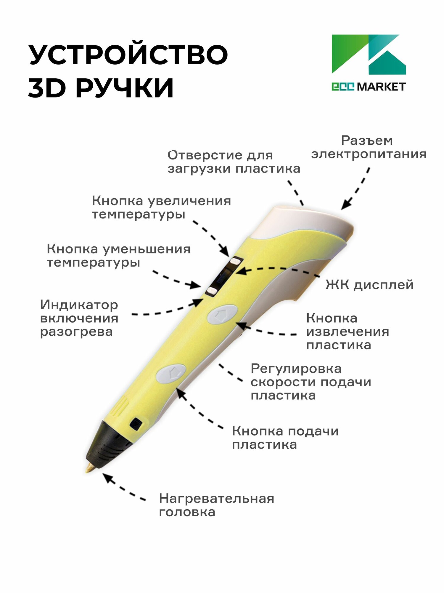 3D ручка 3DPEN-2 с подарочным набором пластика PLA 70 метров и трафаретами для 3д рисования, желтая ZY: сравнение цен, характеристики, фото, актуальное наличие и цены.