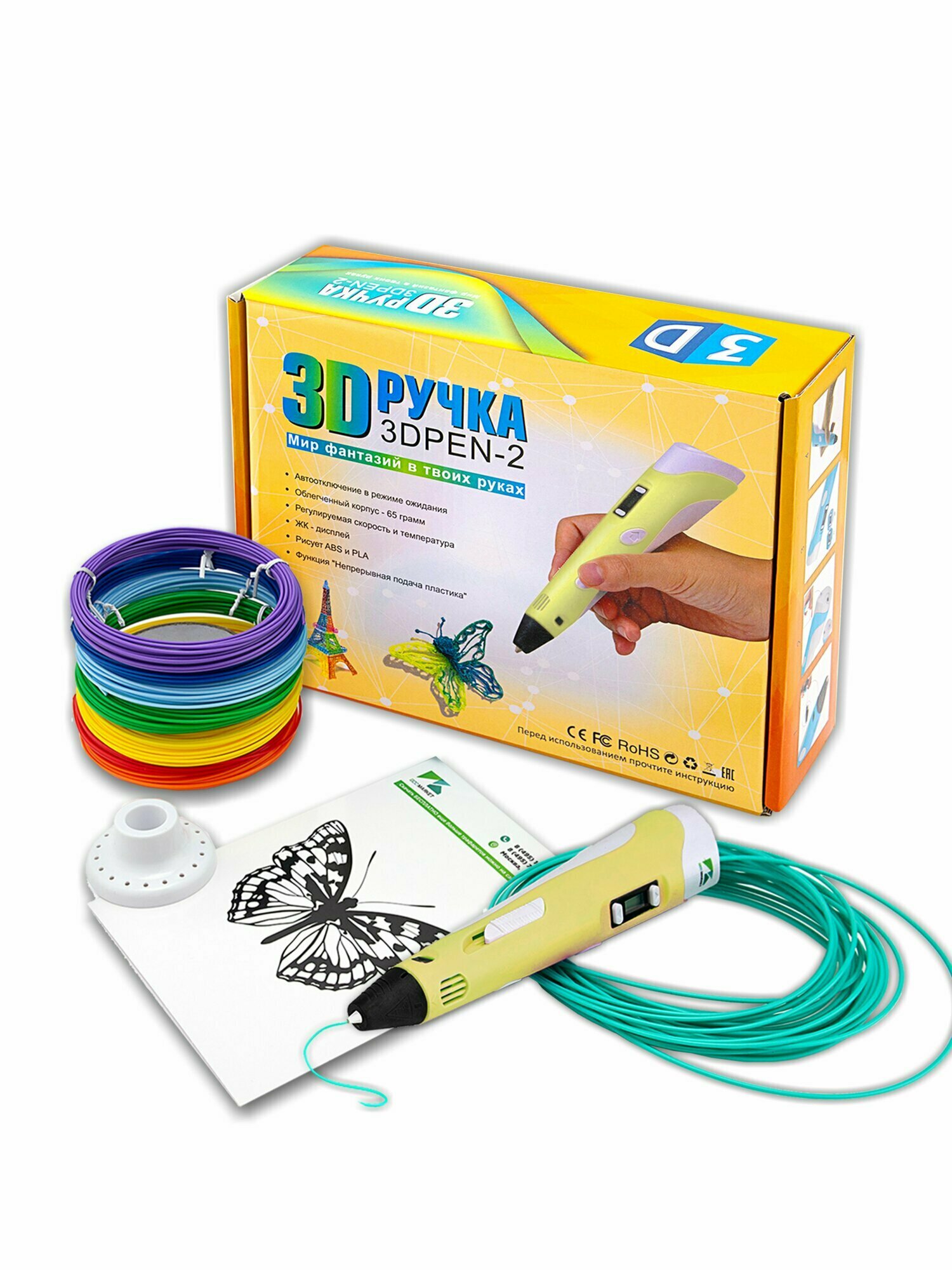 Купить 3D ручка 3DPEN-2 с подарочным набором пластика PLA 70 метров и трафаретами для 3д рисования, желтая ZY с доставкой по всей России.