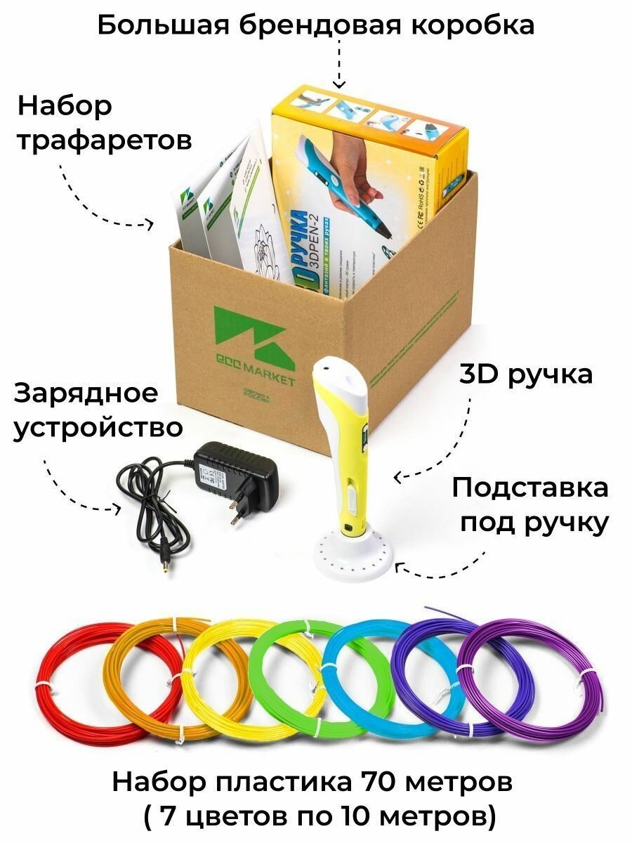3D ручка 3DPEN-3 с набором пластика 70 метров и трафаретами для 3д рисования, желтая: сравнение цен, характеристики, фото, актуальное наличие и цены.